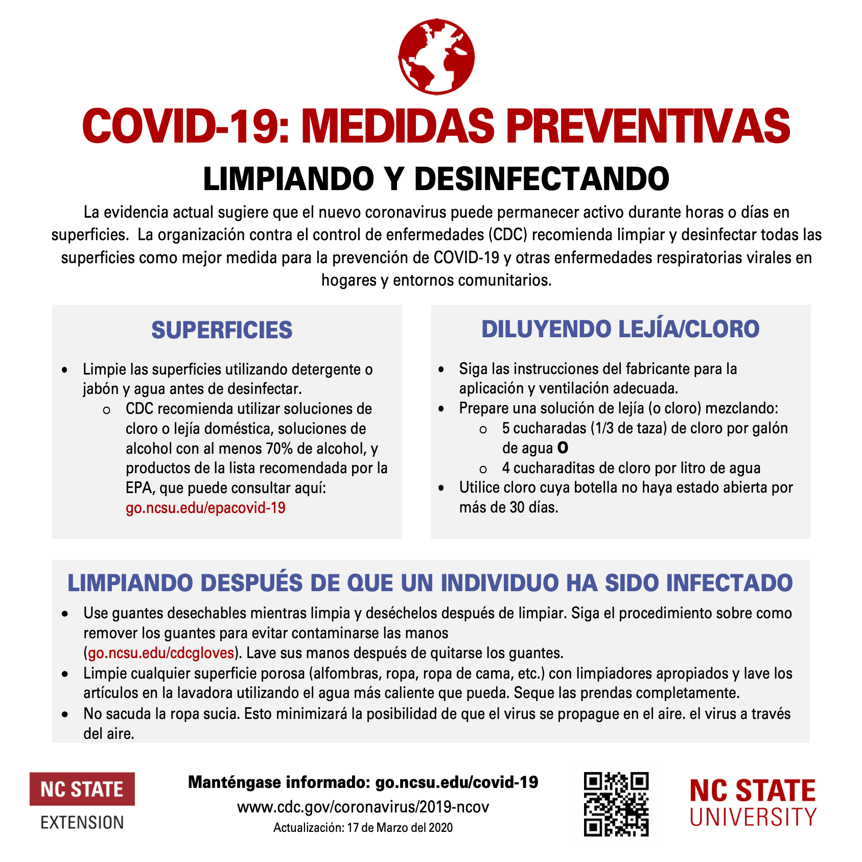 - Limpiando y Disinfectando (Cleaning and Disinfection, 3.18.20)