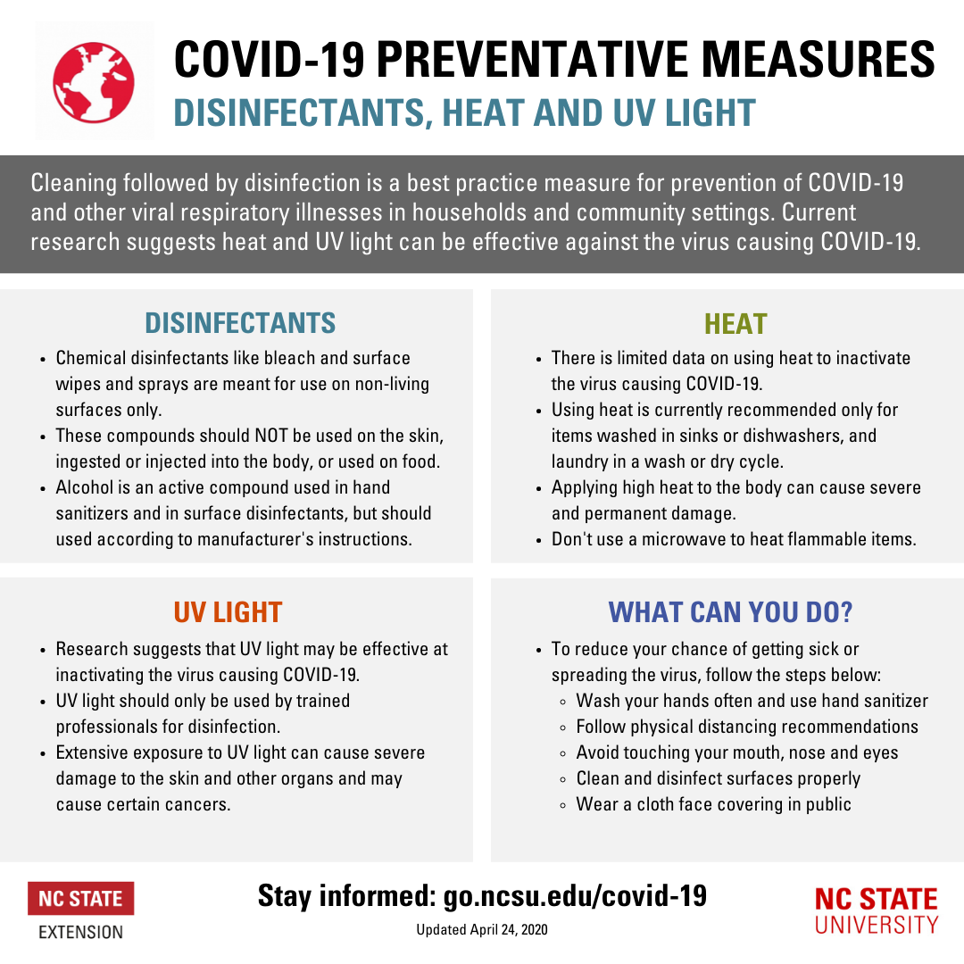 - Disinfectants, UV Light and Heat for Virus Inactivation (4.24.20)